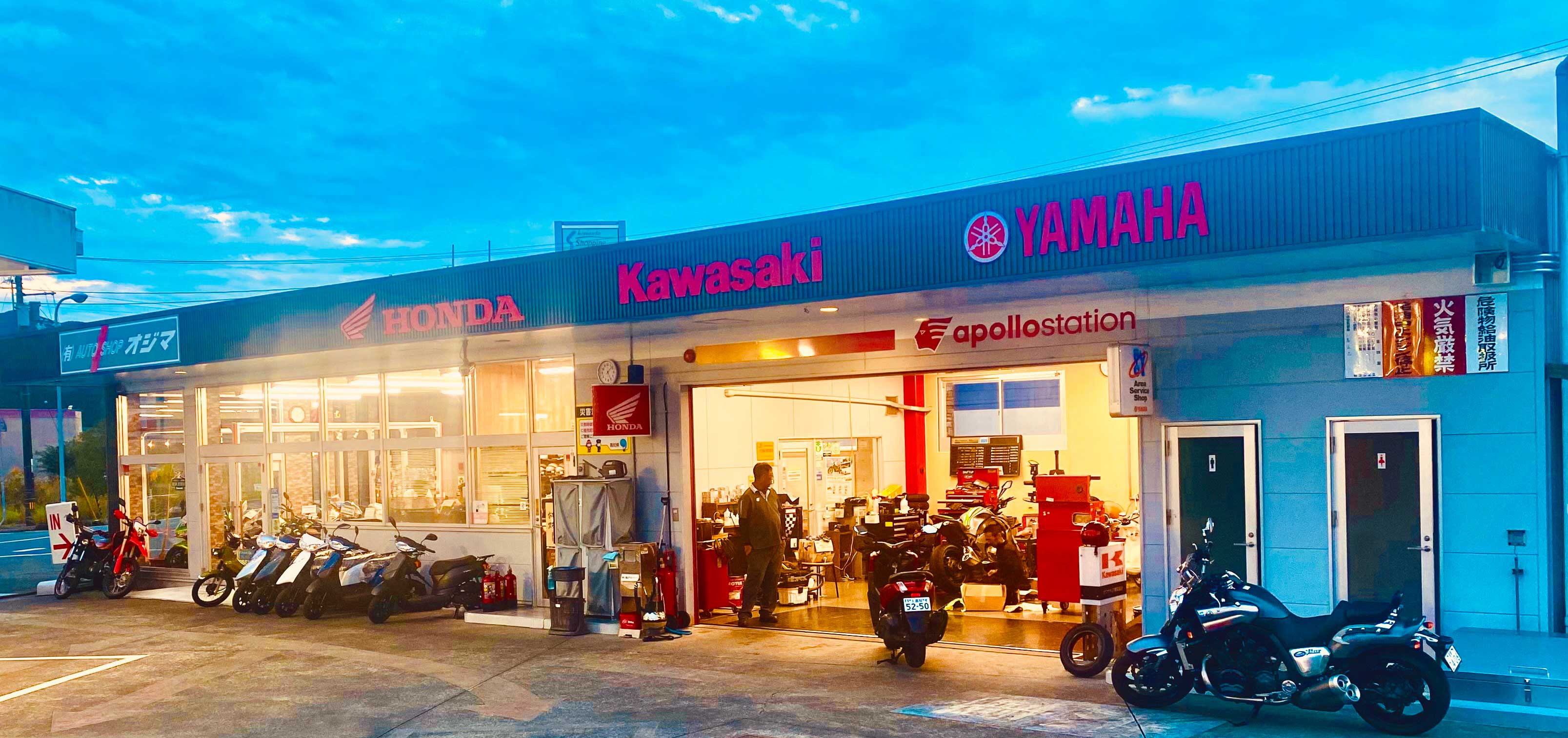田舎の小さなバイク屋です。カワサキ(プラザサービス協力店)・ホンダ・ヤマハ・スズキの正規販売店です。